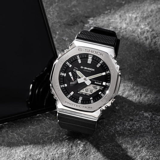 Casio G-Shock GM-2100-1ADR Silver Analog-Digital Dial Black Resin Strap Men's Watch Shock and 200M Water Resistant G1159