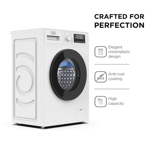 Black and Decker 8.0 Kg 5 Star Fully-Automatic Front Loading Washing Machine(2023 Model, Bxwd01280In, White, 1400 Rpm, In-Built Heater, Steam Wash, Bldc Motor Drive)