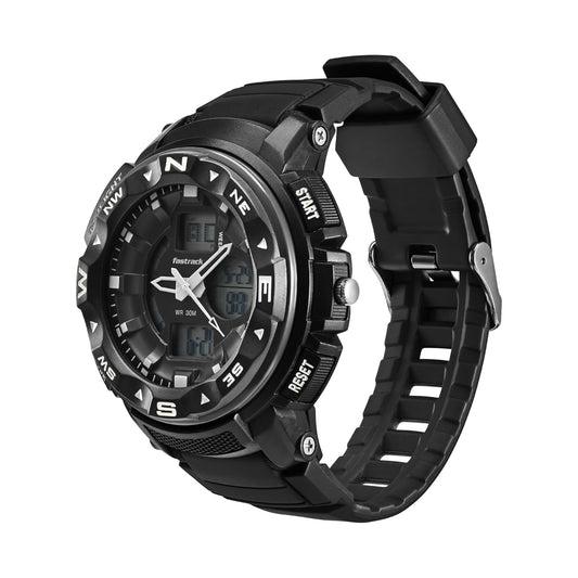 Fastrack AnaDigi Black Dial Plastic Strap Unisex Analog-Digital Watch-38076PP01W