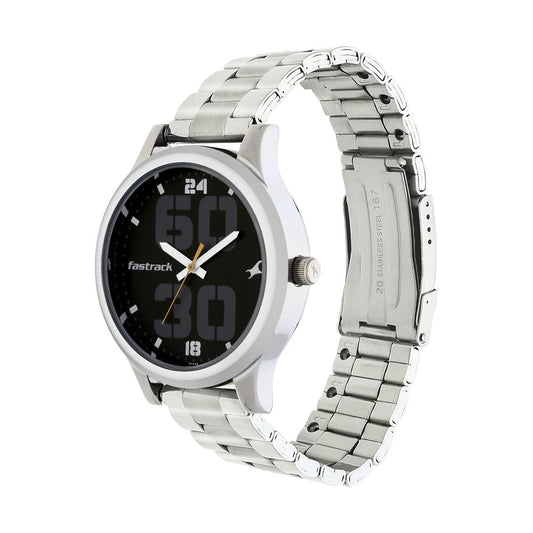 Fastrack Men Hitlist Quartz Analog Black Dial Stainless Steel Strap Watch for Guys-NS3089NM02