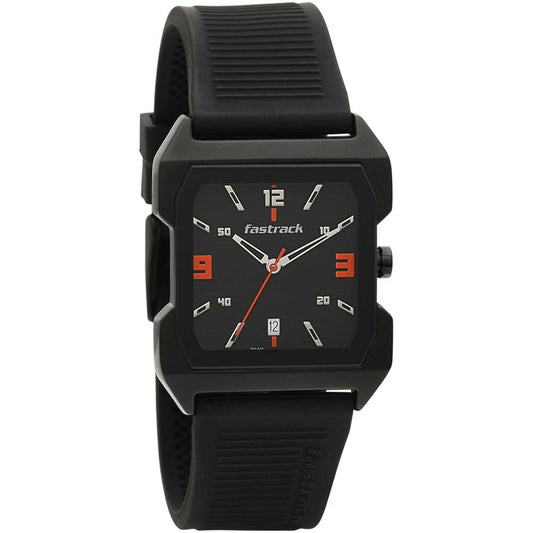 Fastrack Hitlist Quartz Analog Men Rubber Strap with Date Black Dial PU Strap Watch for Guys-NS1474NP01