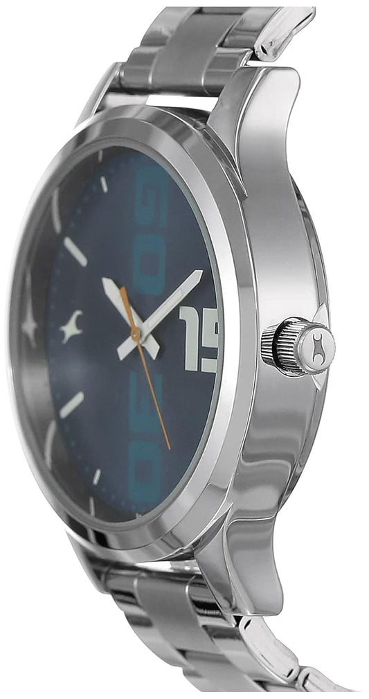 Fastrack Men Bold Quartz Analog Blue Dial Stainless Steel Strap Watch for Guys-NS38051SM05