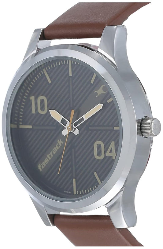 Fastrack Men Quartz Analog Black Dial Leather Strap Watch for Guys-NS38051SL02