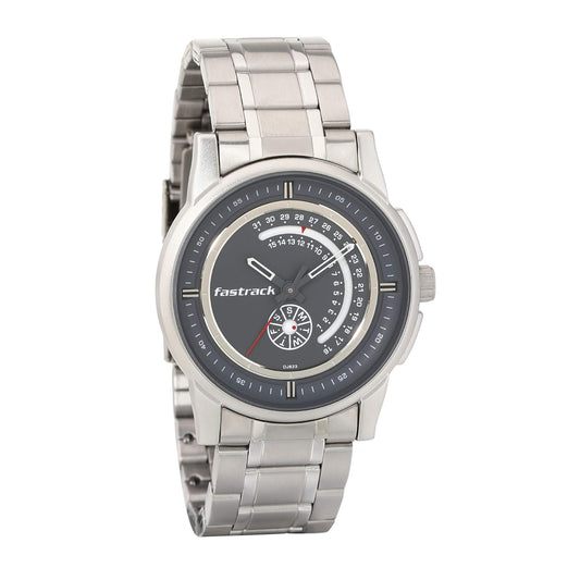 Fastrack Go Skate Quartz Analog with Day and Date Grey Dial Stainless Steel Strap Watch for Men-NS3215SM02