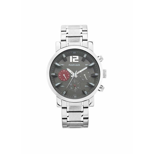 Fastrack Mens Analog Gray Dial Silver Band Stainless Steel Watch