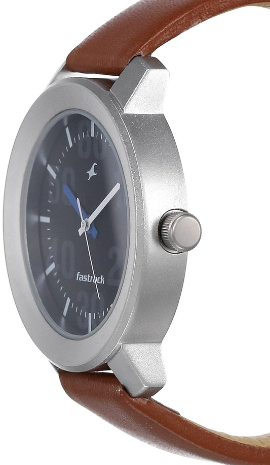 Fastrack Mens Analog Black Dial Brown Band Leather Watch
