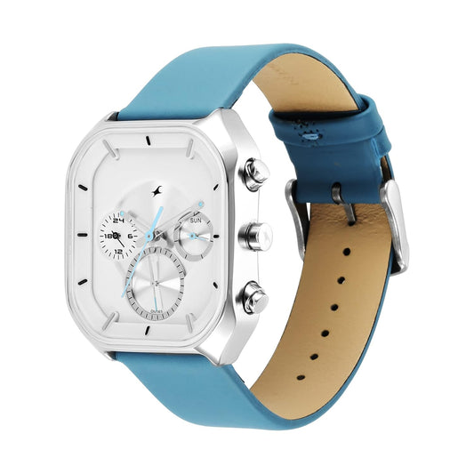 Fastrack Mens After Dark Quartz Analog with Date White Dial Leather Strap Watch for Guys-NS3270SL02
