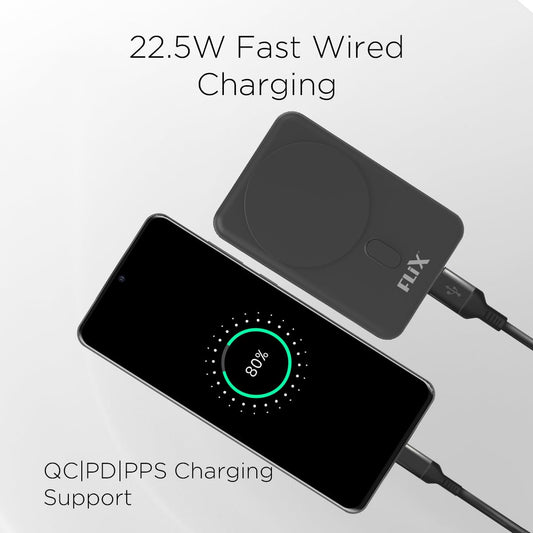 FLiX (Beetel) MagConnect Elite 10,000mAh 15W Magnetic Wireless Output,22.5W QC Pocket Power Delivery PPS,Type C & Type A Input/Output,Rapid Charge,LED Display,Perfect for iPhone 12,13,14(Black)