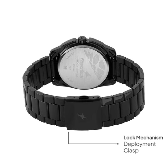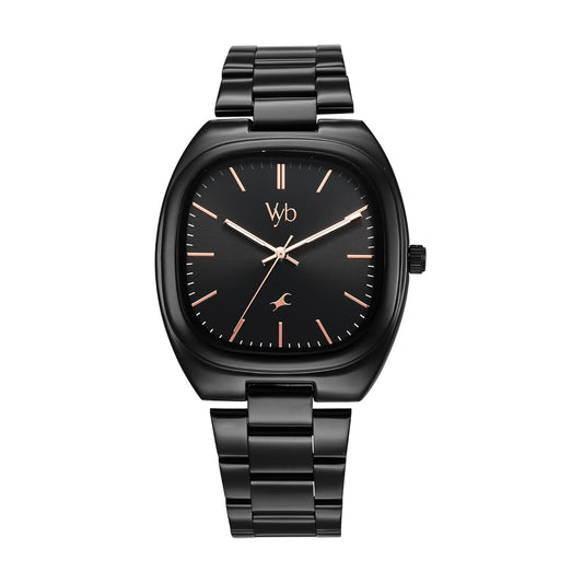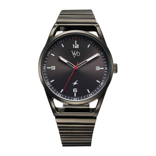 Fastrack Vyb Quartz Analog Black Dial Black Sheet Metal Strap Watch for Men-FV30002NM01W