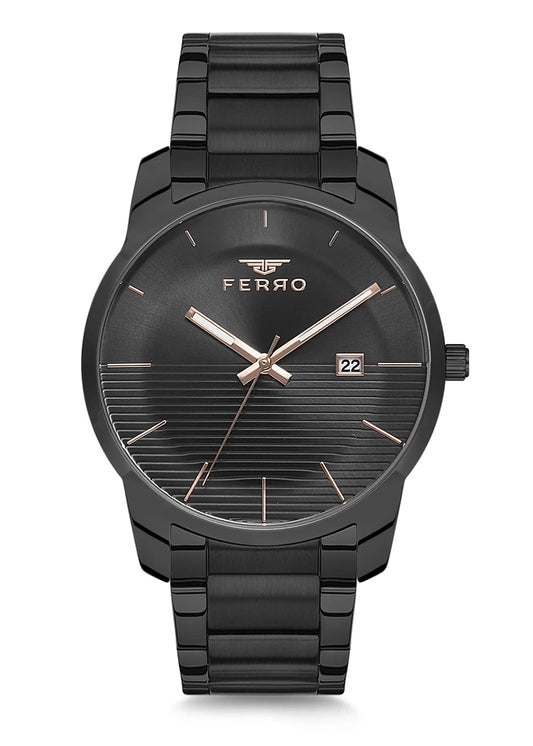 Ferro Lucca Analog Black Round Dial Men's Watch with Date Function & Bracelet Strap