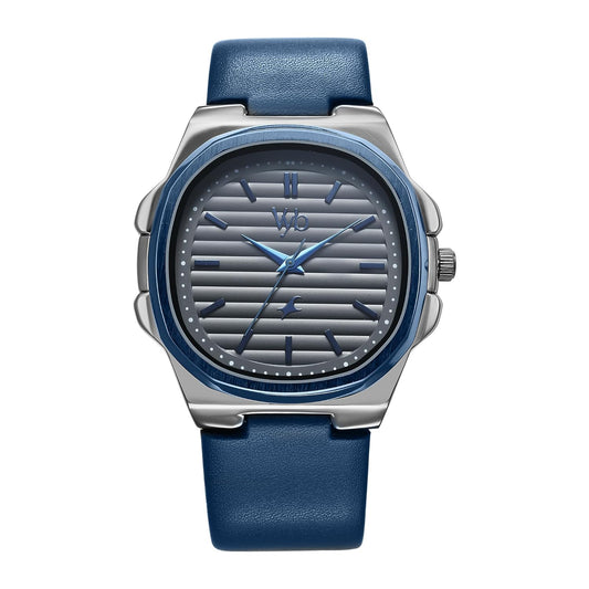 Fastrack Vyb Quartz Analog Gun Dial Blue Genuine Leather Strap Watch for Men-FV30011KL01W