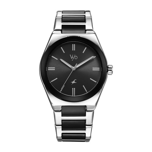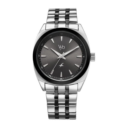 Fastrack Vyb Quartz Analog Black Dial Silver+Black Sheet Metal Strap Watch for Men-FV30007KM01W