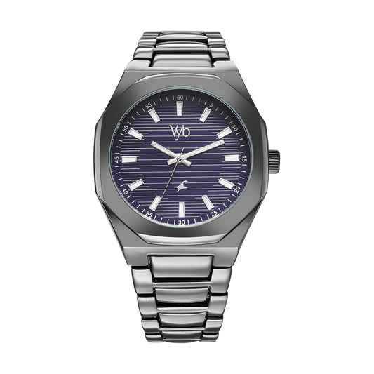 Fastrack Vyb Quartz Analog Blue Dial Steel Sheet Metal Strap Watch for Men-FV30006SM01W