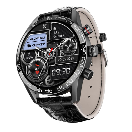 boAt Enigma Z40 Smart Watch with 1.32" HD Display, Luxurious Metal Body Design, 100+ Sports Mode, Female Wellness, Built-in Games, HR & SpO2, IP67(Black Leather)