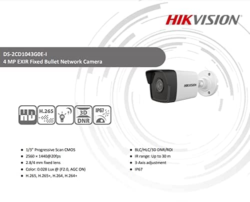 Hikvision Network IP Camera 2 MP Build-in Mic Fixed Bullet Network Camera Bundle (Easy IP ACUSENSE, DS-2CD1023G0-IUF)