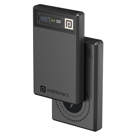 Portronics Power Shutter 10000mAh 15W Magnetic Wireless Fast Charging Powerbank with in-Built Type C & 8 Pin Cable, 22.5W Type C PD Output, Type C Bidirectional Port, LED Display (Black)