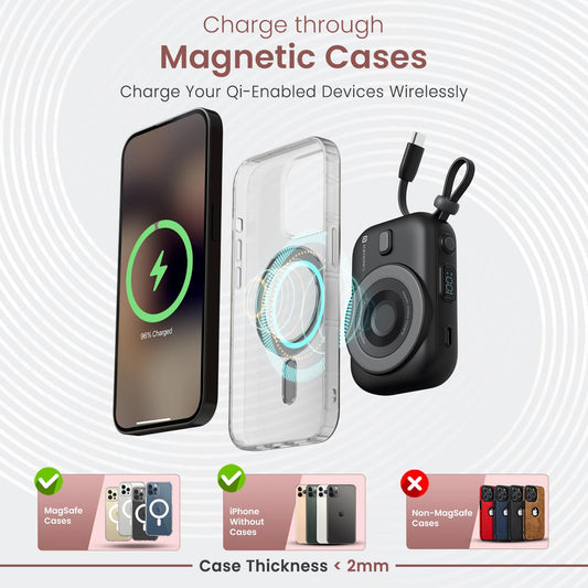 Portronics Luxcell Wireless Mini 10k 10000mAh 15W Magnetic Wireless Fast Charging Nano Power Bank with 22.5 Wired Output Compatible with iPhone 12 & Above & Other QI Enabled Devices(Black)