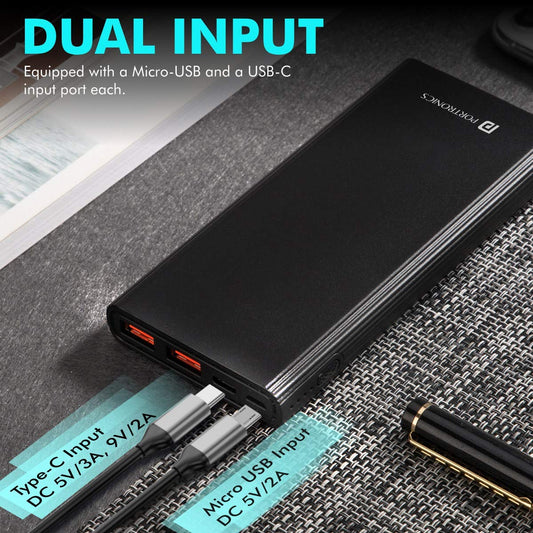 Portronics Power PRO 10K 10000 mAh,10w Slim Power Bank with Dual USB Output Port for iPhone, Anrdoid & Other Devices.(Black)