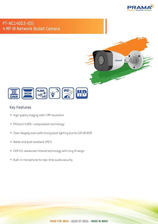 PRAMA EVteQ PT-NC140D3-I(D) 4 MP IR Network Bullet Camera H.265, IP67, IPC