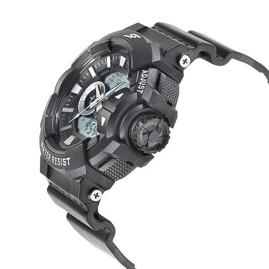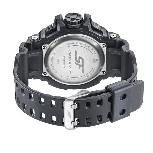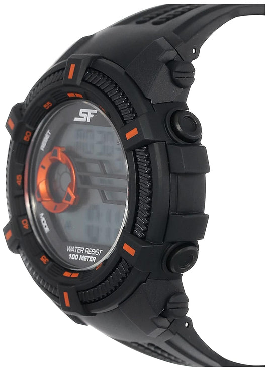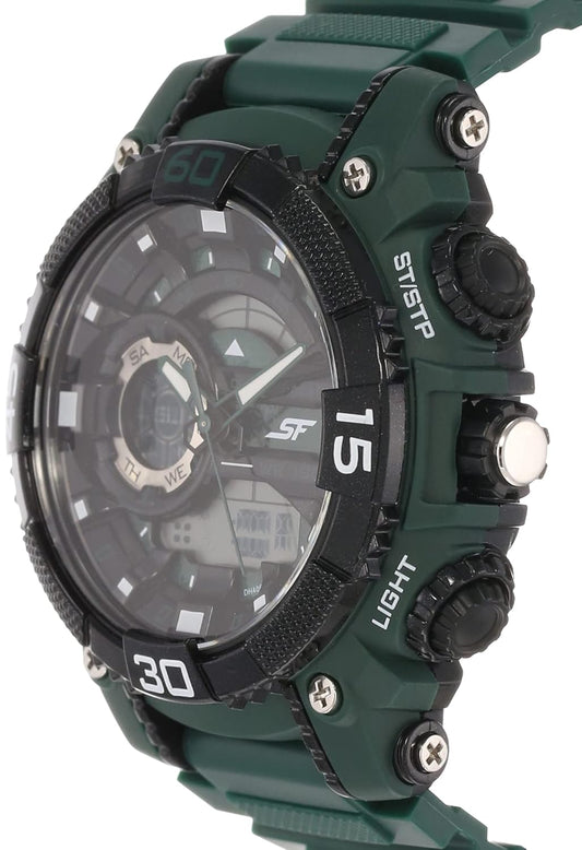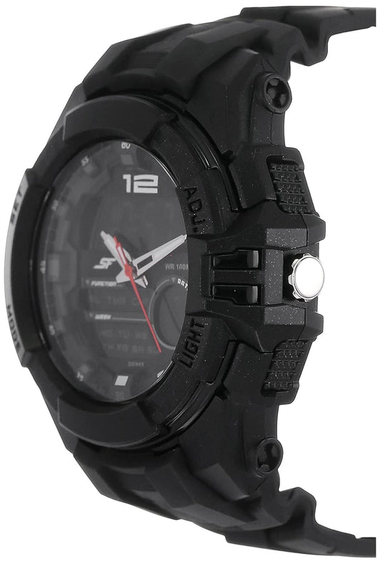 SF Quartz Analog Digital Black Dial Plastic Strap Watch for Men-NP77027PP01