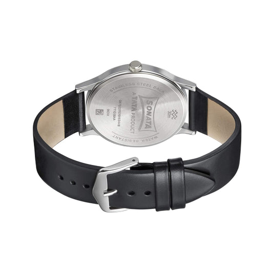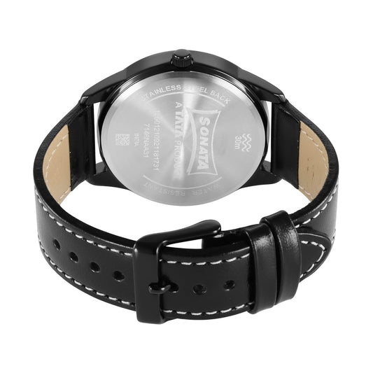 Sonata Men Leather Smart Plaid Analog White Dial Watch-Nn77105Sl01W/Np77105Sl01W, Band Color-Black
