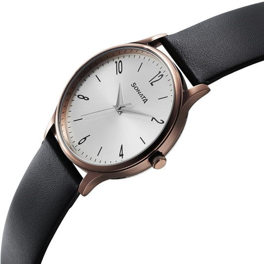 Sonata Aspire Quartz Analog Silver Dial Leather Strap Watch for Men-77105QL03W
