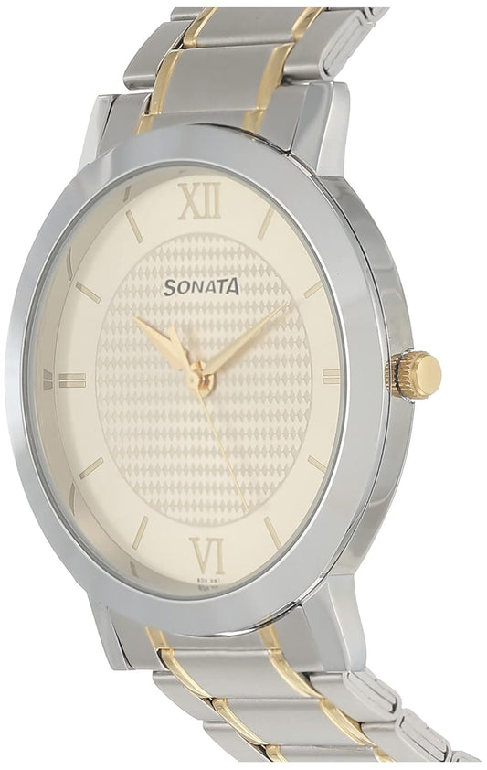 Sonata Quartz Analog Champagne Dial Stainless Steel Strap Watch for Men-NS77108BM01W