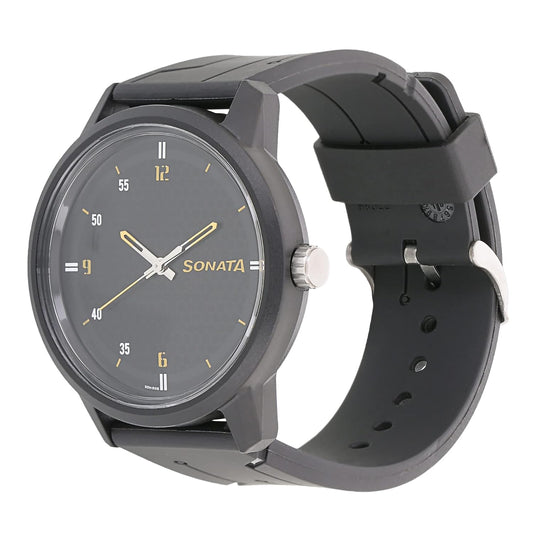 Sonata Quartz Analog Black Dial Plastic Strap Watch for Men-NS77085PP03W