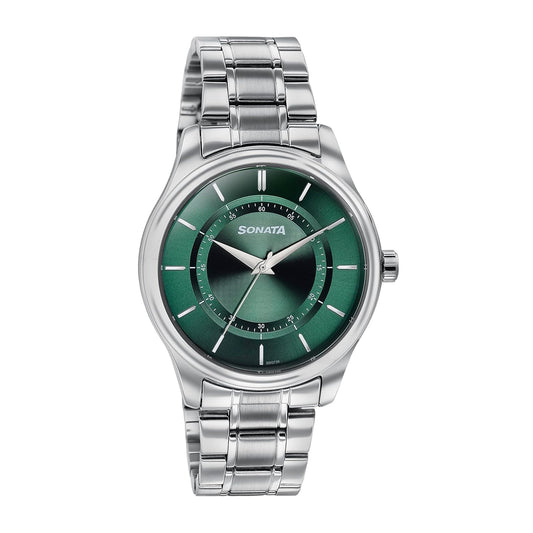 Sonata Quartz Analog Green Dial Silver Stainless Steel Strap Watch for Men