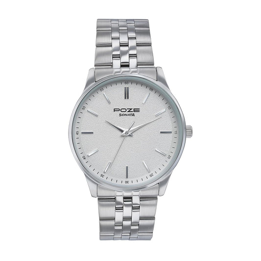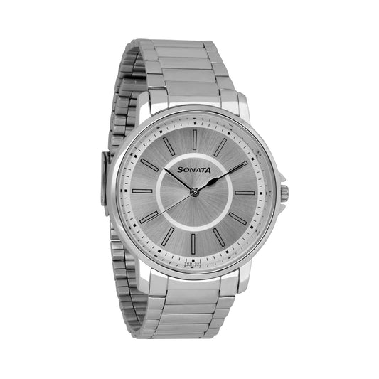 Sonata Quartz Analog Silver Dial Stainless Steel Strap Watch for Men-NS77083SM03