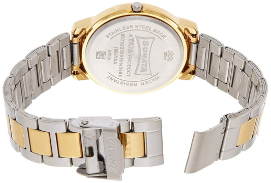 Sonata Quartz Analog Champagne Dial Stainless Steel Strap Watch for Couple-NS70808069YM02P