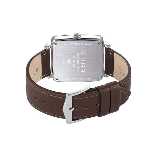 Titan Analog with Day and Date Silver Dial Leather Strap Watch for Couple-NS15782489SL03P