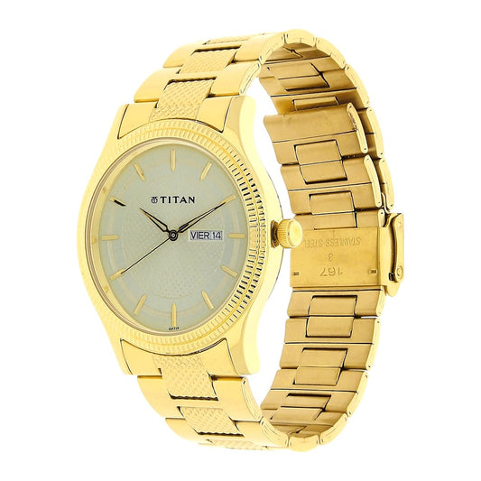 Titan Analog with Day and Date Quartz Champagne Dial Metal Round Stainless Steel Strap watch for Men-NS1650YM06