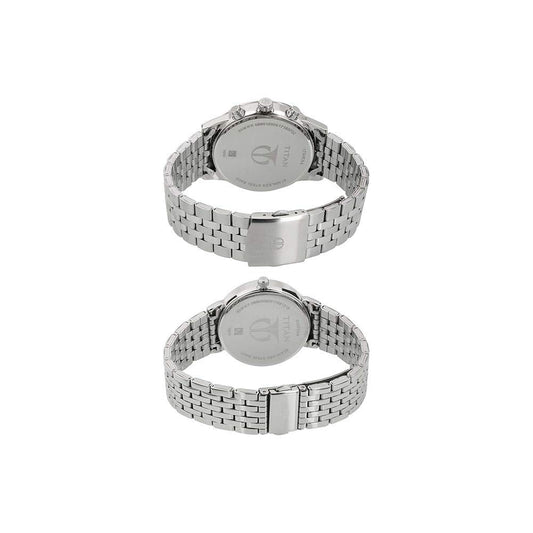 Titan Bandhan Quartz Analog with Date Silver Dial Stainless Steel Strap Watch for Couple-NS17752481BM01P