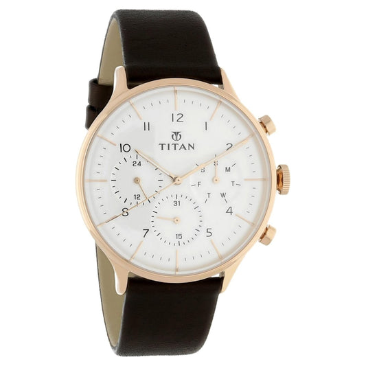 Titan Classic White Dial Analog with Date Leather Strap watch for Men-NS9162SL04