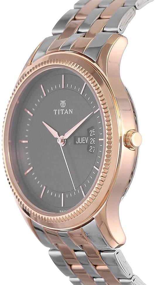 Titan Brown Dial Analog with Day and Date Stainless Steel Strap Watch for Men-NN1824KM01