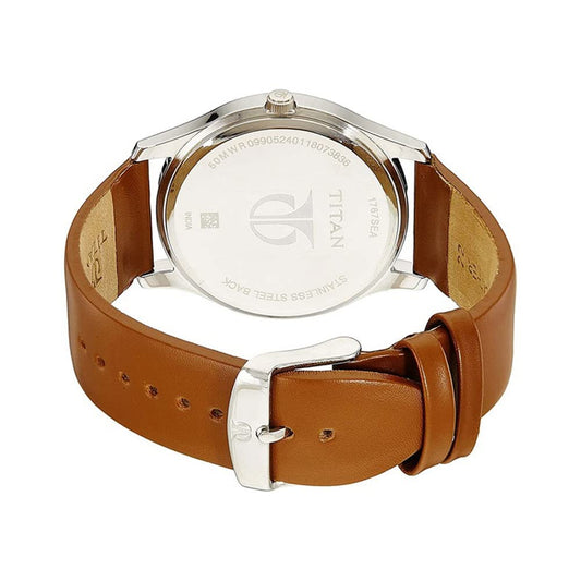 Titan Quartz Analog Silver Dial Leather Strap Watch for Men-NN1639SL03