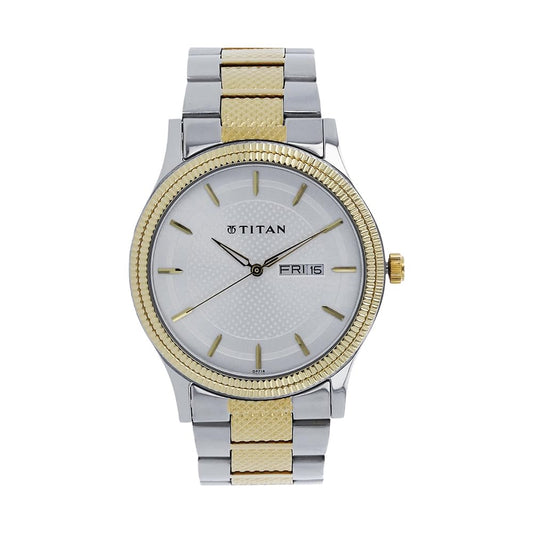 Titan On Trend White Dial Analog with Day and Date Leather Strap watch for Men-NR1767SL01