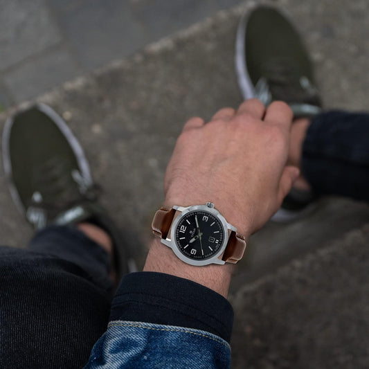 Titan Quartz Analog Black Dial Leather Strap Watch for Men-NS1730SL02