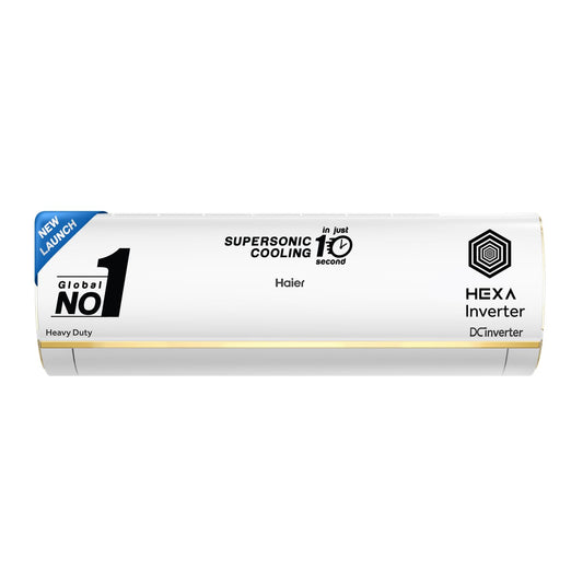 Regular price ₹ 48,990Regular priceUnit price / per₹ 81,999Sale price ₹ 48,990Haier Limited Edition 1.6 Ton 5 Star AI Climate Control Smart Split AC (5460 Watts, Copper, HEXA Inverter, Heavy Duty, 4-Way Swing, Frost Clean, HD Filter, Cools at 60°C-HSU19K-PZFB5BN-INV, Black)